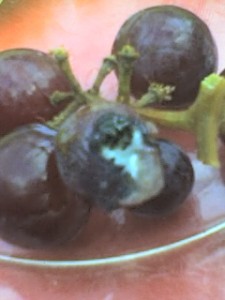 Now let me tell you, you had to, not because I’ve suddenly become a symbol of trickery and slyness. Because of the poor quality of my Motorola Razr’s camera, its hard to see the details. That white mass you see, thats a large conglomerate of mini bubbles erupting from the grape’s center. I could save it. The flesh around the eruption is curled back and black. Very sickly looking.